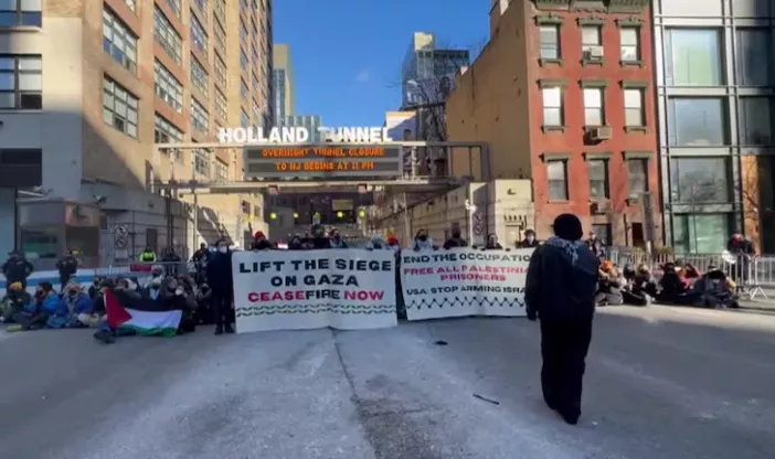 Na snimku objavljenom na društvenim mrežama tokom protesta vidi se kako demonstranti skandiraju: „NYPD, KKK, IDF svi su isti“, misleći na policijsku upravu New Yorka, Ku Klux Klan i Izraelske odbrambene snage. Demonstranti u tunelu Holland nosili su transparente na kojima je pisalo „Prekinite opsadu Gaze“, „Primirje odmah“ i „Okončajte okupaciju“.
