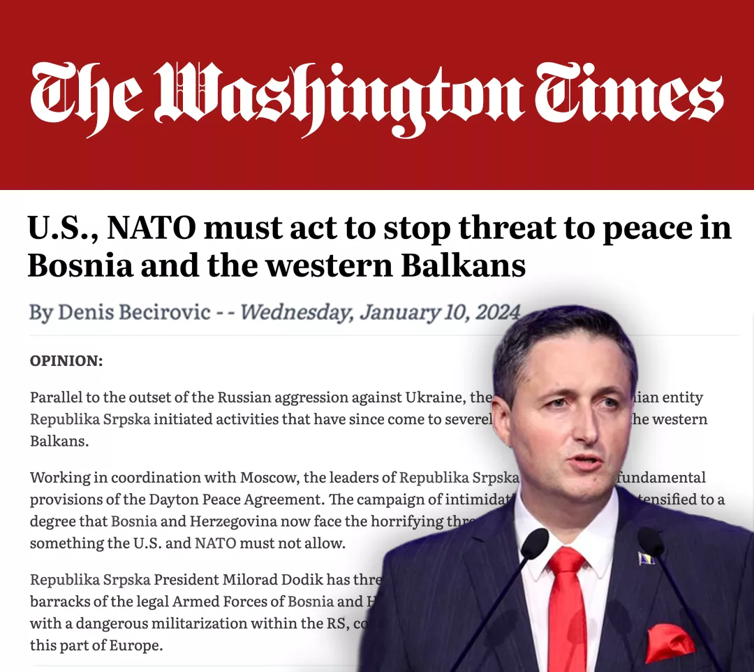 (Patria) - U utjecajnom američkom listu The Washington Times član Predsjedništva BiH Denis Bećirović prezentira ocjene i stavove o aktuelnoj političkoj i sigurnosnoj situaciji u Bosni i Hercegovini i regiji Zapadnog Balkana.