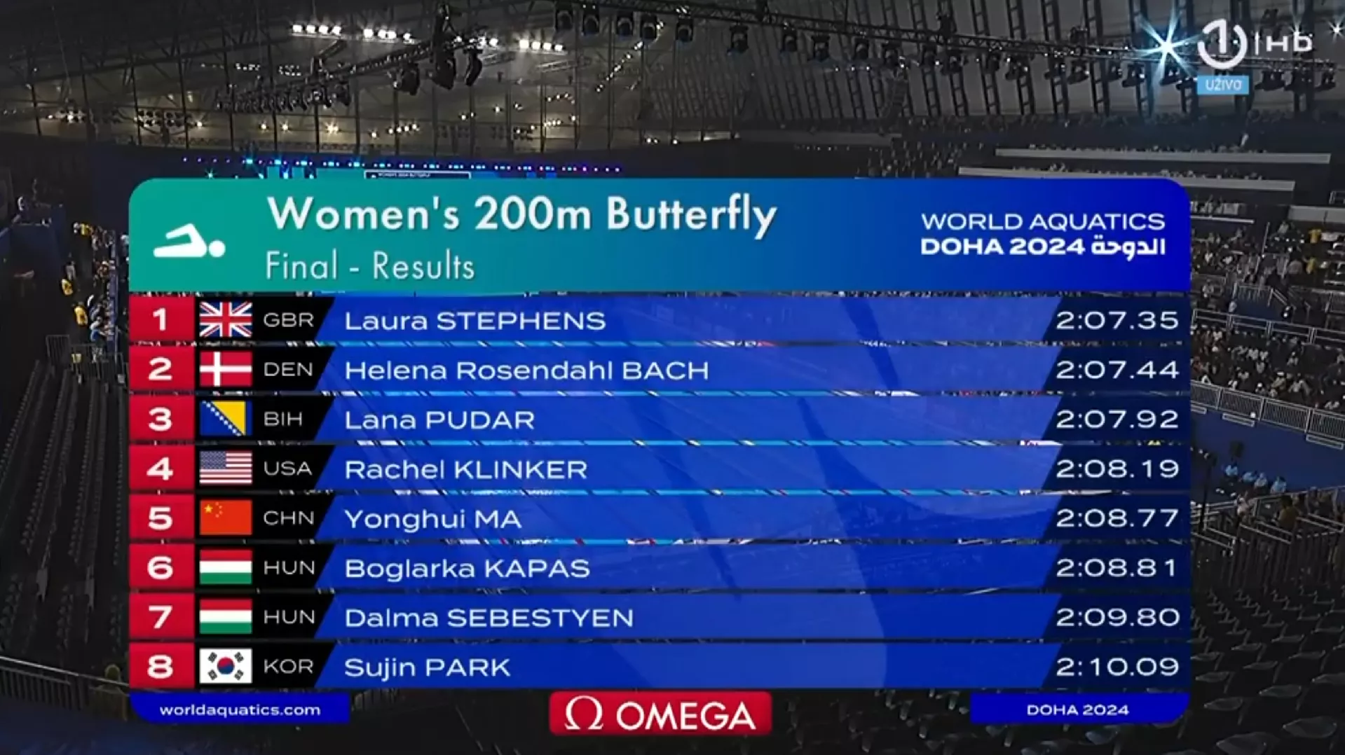 Finalnu utrku na 200 metara delfin sjajna Mostarka isplivala je za 2 minute, 7 sekundi i 92 stotinke.