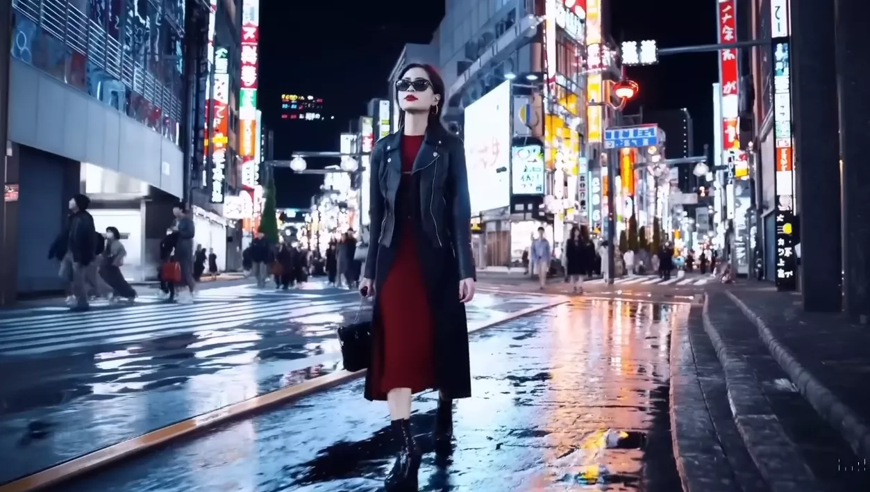 Tako možemo vidjeti video žene na ulici Tokija okupane neonskom rasvjetom, mamuta koji galopiraju kroz snijeg, čudovište iz crtića kako znatiželjno kleči pred svijećom koja se topi, reprodukciju američkog Divljeg zapada...