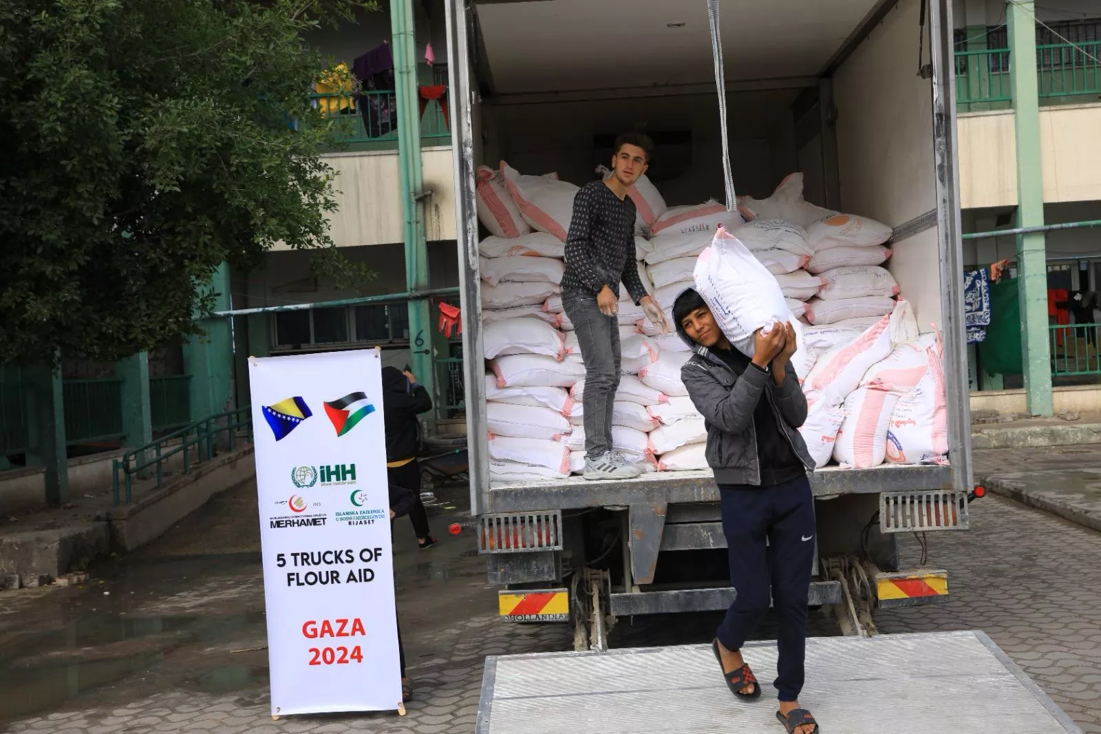 (Patria) - Muslimansko dobrotvorno društvo „Merhamet“ započelo je sa podjelom brašna ugroženom stanovništvu Gaze. Riječ je o 100 tona ove životne namirnice, ukupne vrijednosti od 209.000 KM, koje je u Gazu dopremljeno u pet šlepera.