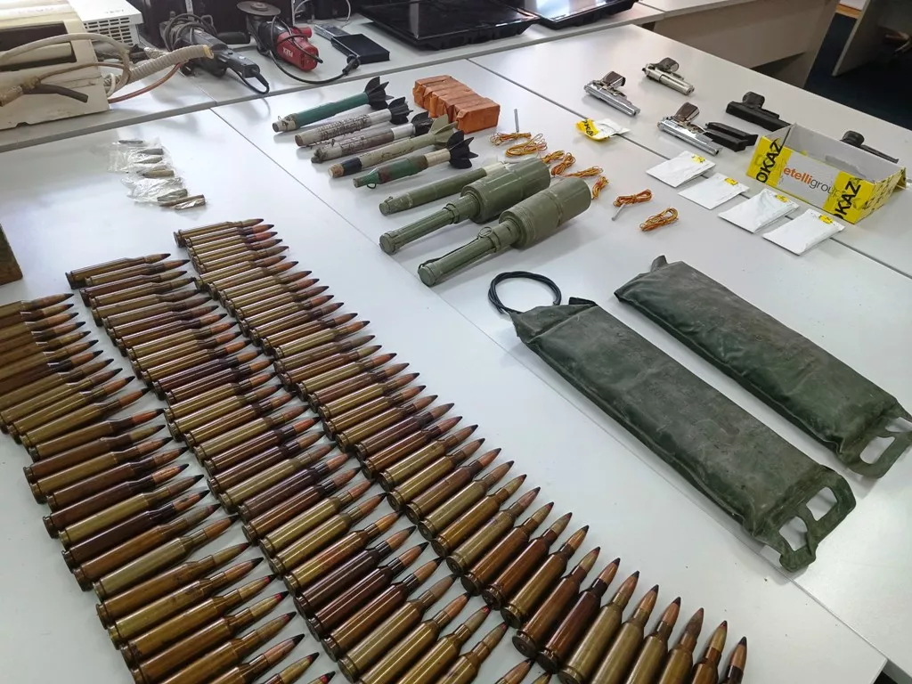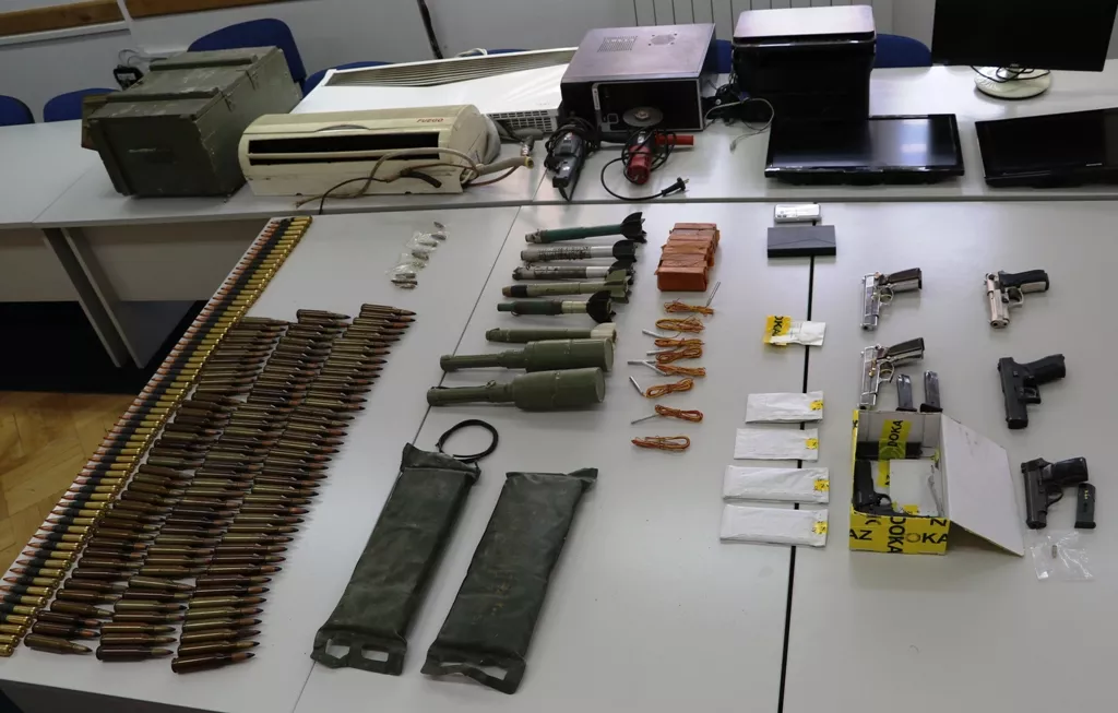 Pronađeni su i privremeno oduzeti veća količina oružja, municije, eksplozivnih sredstava, cigareta, tehnički uređaji, te određena količina materija koje svojim izgledom asociraju na opojne droge (koje su dostavljene Tužilaštvu TK radi vještačenja), kao i drugi predmeti koji mogu poslužiti kao dokaz u kasnijem postupku.