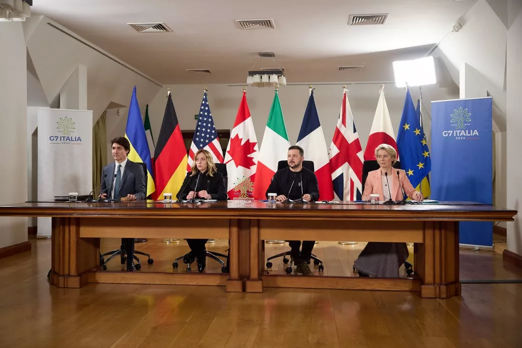 Dok Ukrajina ulazi u treću godinu ovog nemilosrdnog rata, njena vlada i narod mogu računati na podršku grupe G7 koliko god je potrebno", poručili su čelnici G7 - koji čine SAD, Francuska, Velika Britanija, Italija, Kanada, Njemačka i Japan.