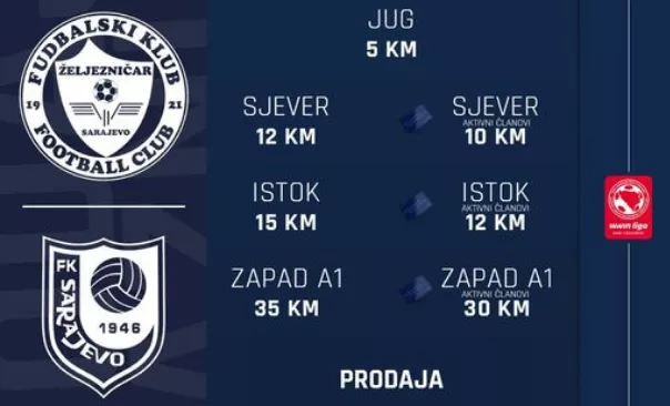 Željezničar je objavio da prodaja ulaznica za susret sa Sarajevom počinje sutra od 9.30 sati.