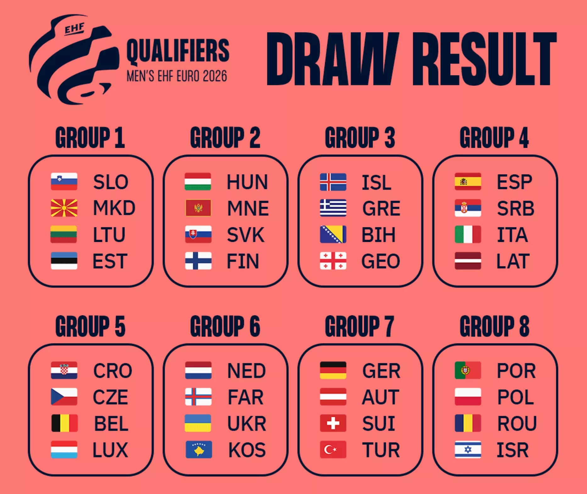 (Patria) - Rukometna reprezentacija BiH saznala je protivnike u kvalifikacijama za Euro koji će 2026. biti održan u Danskoj, Švedskoj i Norveškoj.