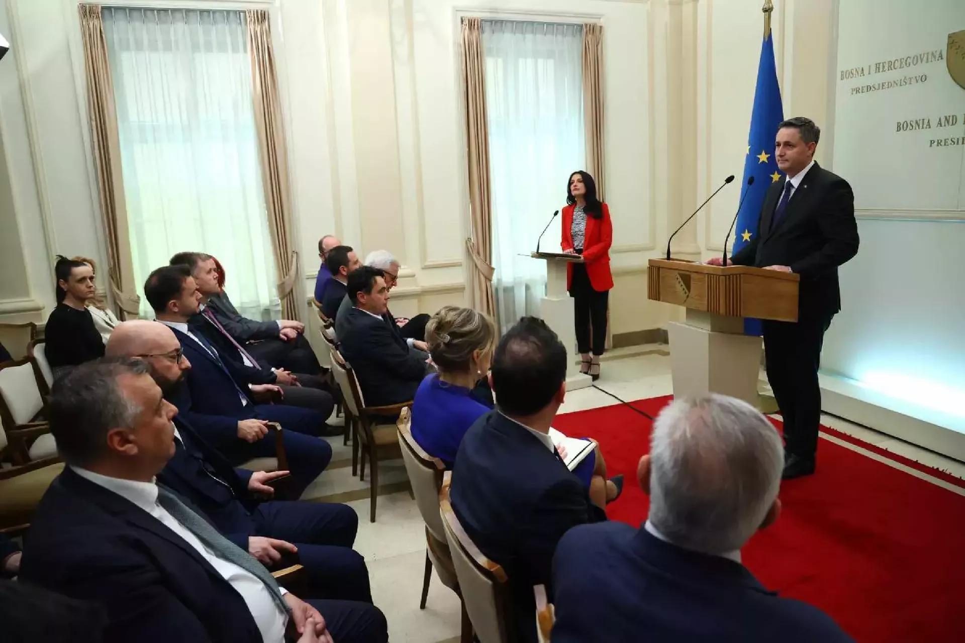 Potencijal članstva u EU daje značajan poticaj za promjene unutar BiH koje su neophodne za jačanje bh. ekonomije i privlačenje investicija, izgradnju istinskog demokratskog društva, jačanje vladavine prava, promovisanje slobode medija, stvaranje odgovarajuće klime za snaženje civilnog društva - poručio je Bećirović, obraćajući se na konferenciji za novinare.