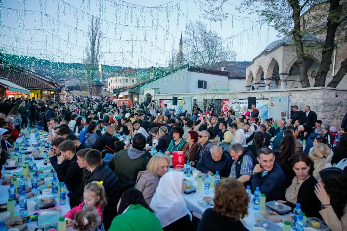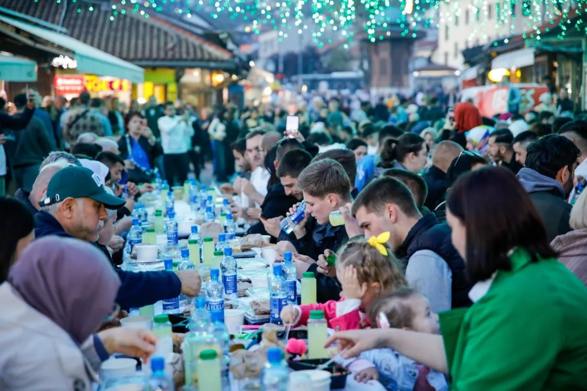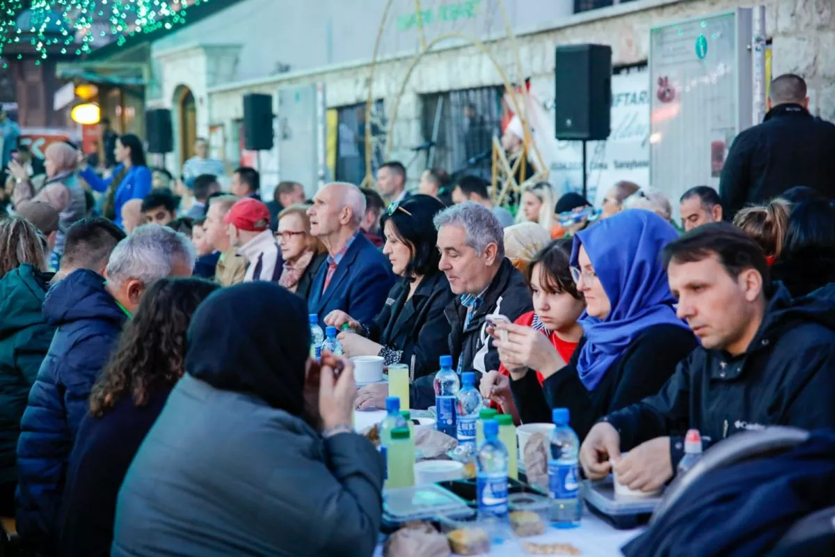 (Patria) - U srcu Starog Grada na Baščaršijskom trgu posebnim iftarom za više stotina građana obilježena je 27. noć mjeseca Ramazana, noć Lejletul-kadra.