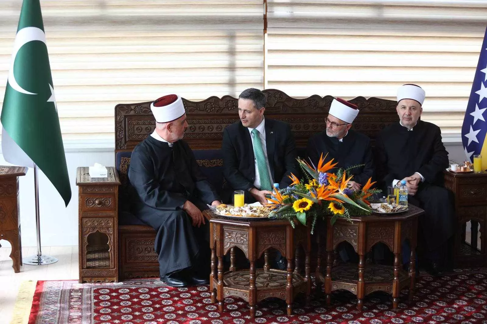 Reisul-ulema Husein ef. Kavazović dočekao je goste među kojima su predsjedavajući Predsjedništva BiH Denis Bećirović koji je u Čajniču u obnovljenoj džamiji klanjao bajram-namaz.