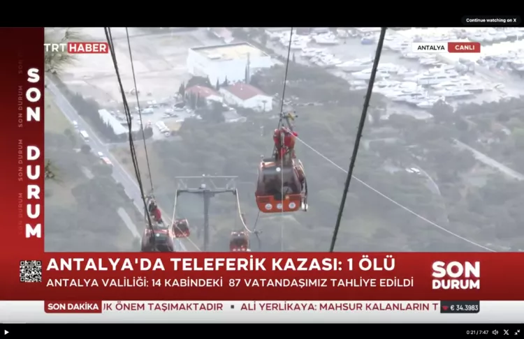 (Patria) - Jedna je osoba poginula, a sedam ih je ozlijeđeno jučer u južnoj turskoj pokrajini Antalya nakon što je kabina žičare udarila u slomljeni stup, priopćili su ured lokalnog guvernera i televizijske kuće.