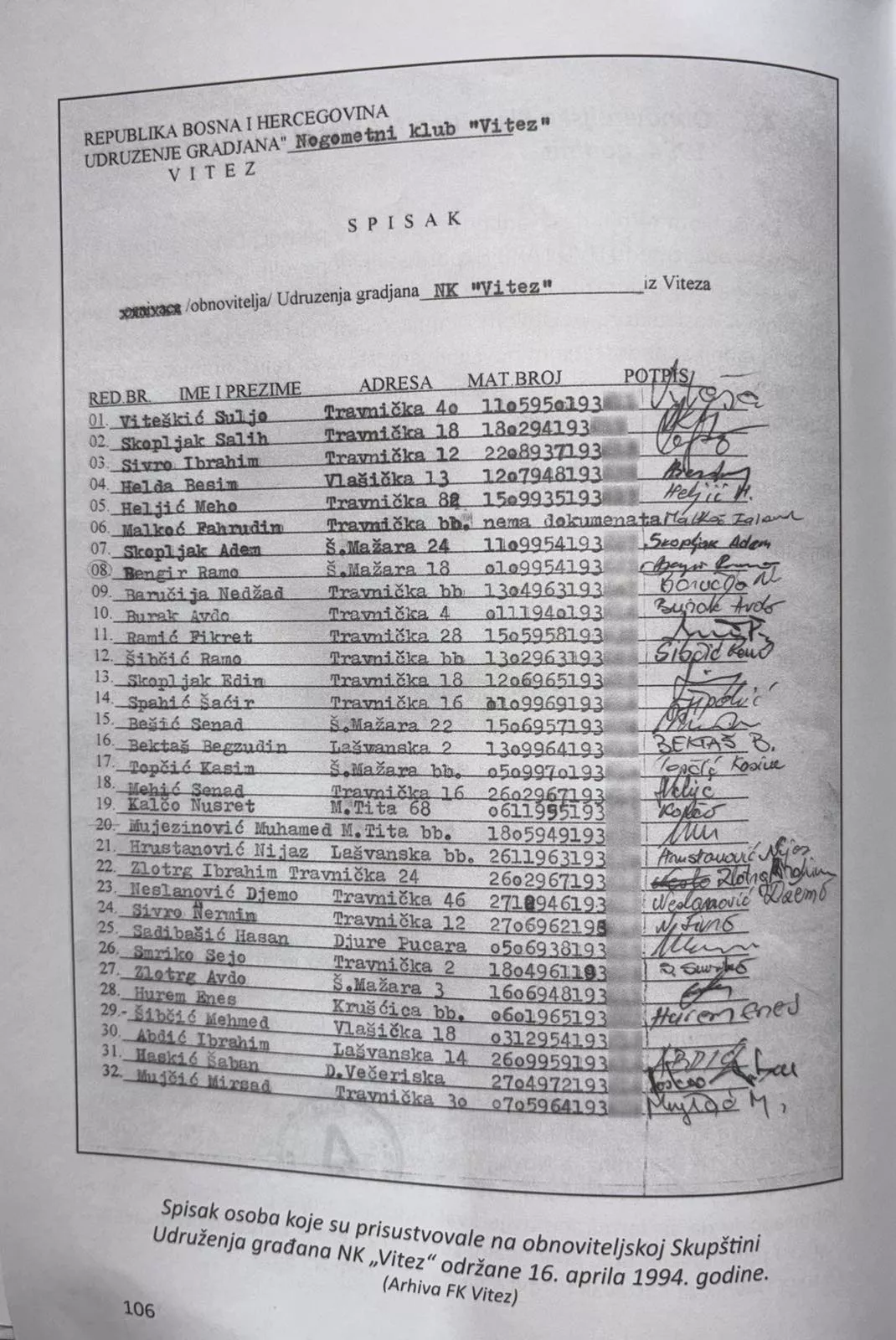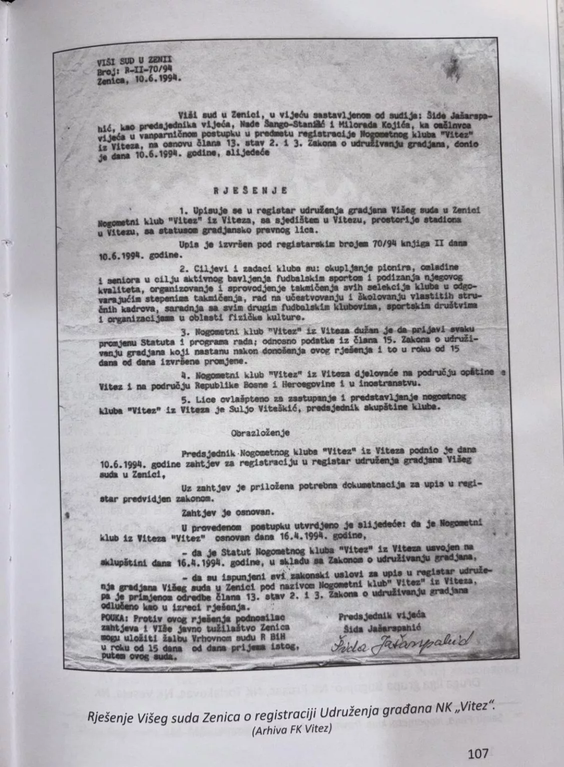 (Patria) - Fudbalski klub (FK) Vitez sutra obilježava 30. godišnjicu od održavanja obnoviteljske skupštine kluba.