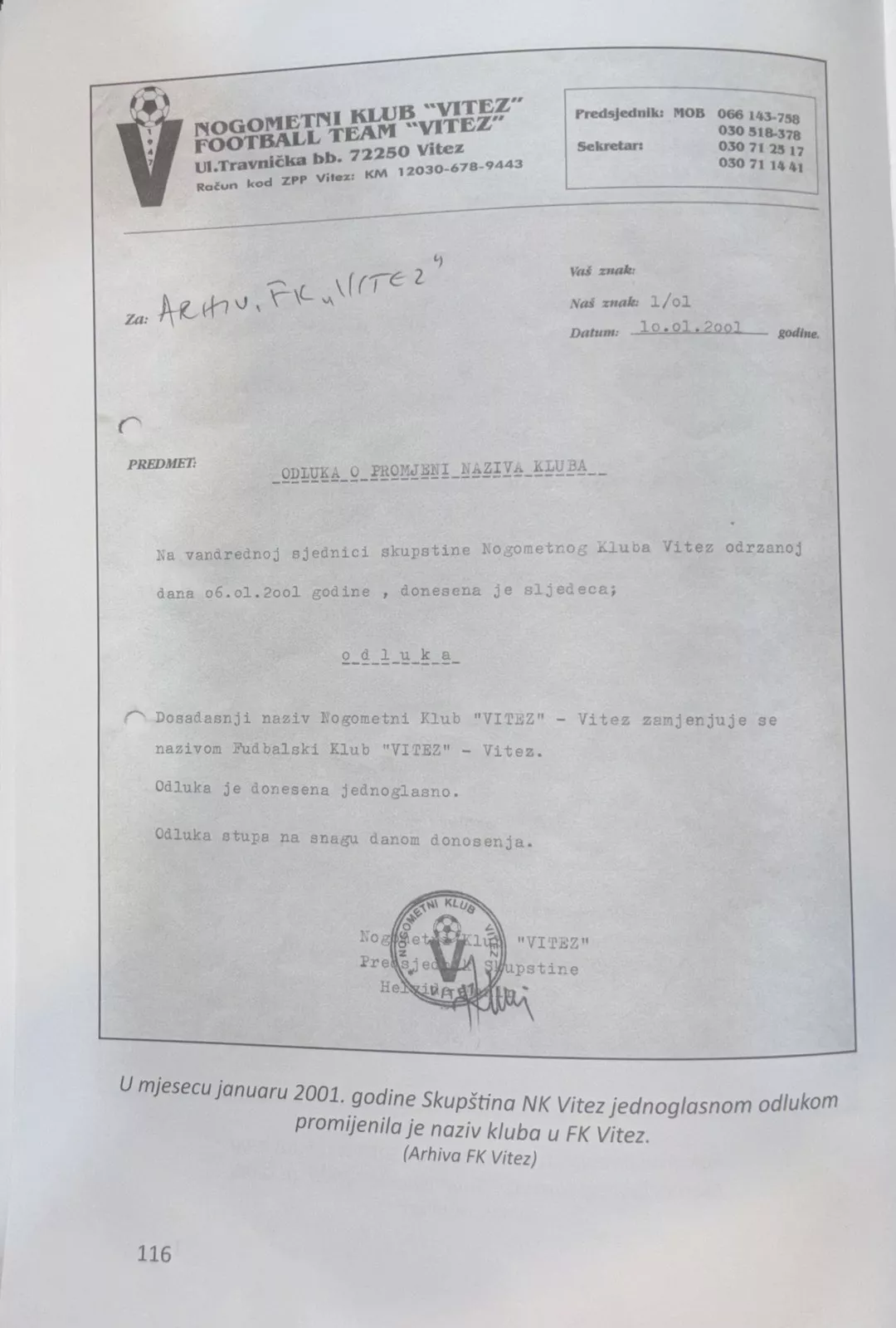 Odluka o promjeni naziva kluba