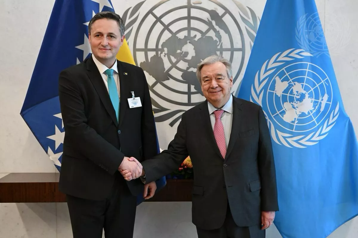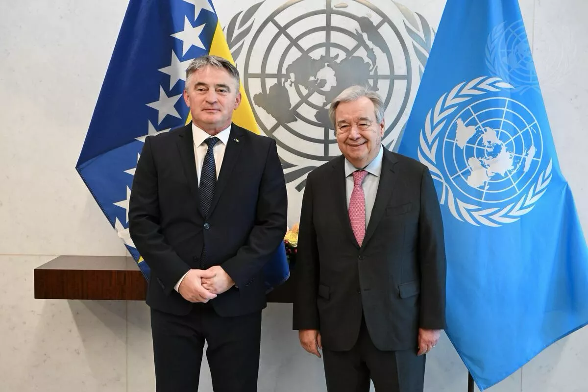 U sjedištu ove međunarodne organizacije Bećirović i Komšić, zahvalili su se generalnom sekretaru UN-a Antóniu Gutteresu na dosadašnjoj podršci aktivnostima i mjerama u borbi protiv negiranja genocida, govora mržnje i veličanja ratnih zločina u Bosni i Hercegovini.