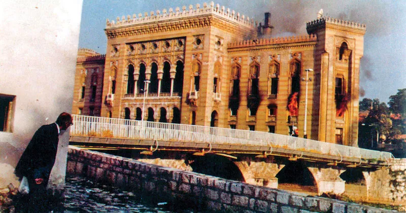 U noći sa 25. na 26. avgusta 1992. zapaljena je zgrada Vijećnice, a u požaru je nestao Katalog Nacionalne i univerzitetske biblioteke BiH, oko 80% knjižnog fonda i dokumenata koji svjedoče o historiji BiH.