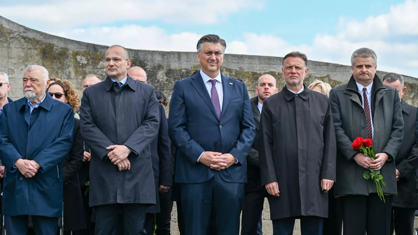 Ruže podno spomenika arhitekte Bogdana Bogdanovića položili su i počast stradalima odali premijer Hrvatske Andrej Plenković, predsjednik Hrvatskog sabora Gordan Jandroković i izaslanik predsjednika Republike Hrvatske Orsat Miljenić s delegacijama.