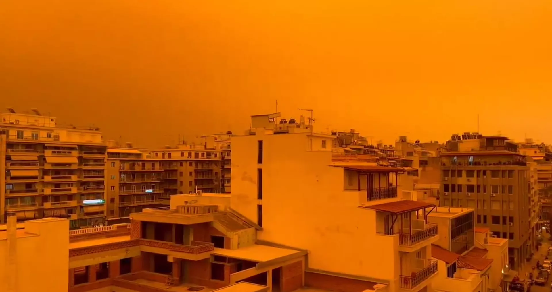 WATCH: Saharan dust turning the sky of Athens, Greece completely orange pic.twitter.com/OoCB8h4Vq3