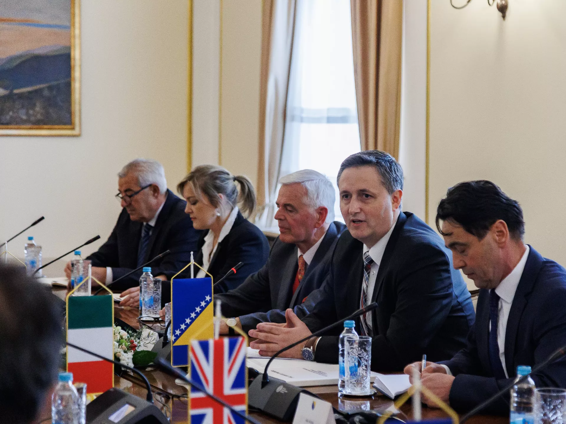(Patria) - Predsjedavajući Predsjedništva BiH Denis Bećirović održao je sastanak s ambasadorima država članica Kvinte (SAD, Njemačka, Francuska, Ujedinjeno Kraljevstvo Velike Britanije i Sjeverne Irske i Italija).