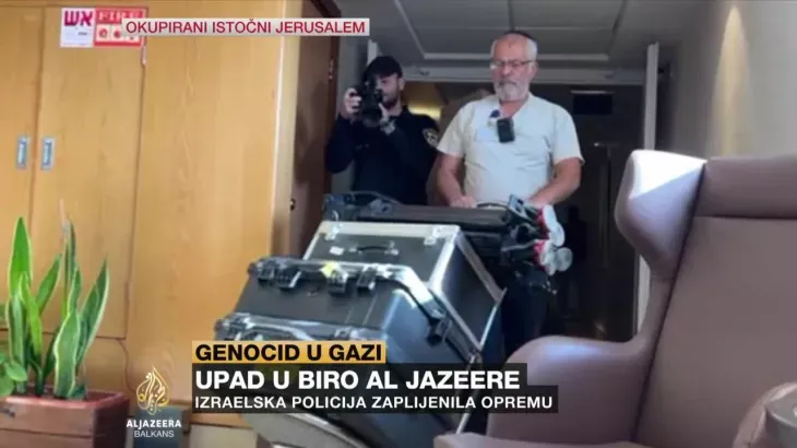 (Patria) - Izraelske vlasti izvršile su raciju u hotelskoj sobi u Jerusalemu koju koristi Al Jazeera kao svoj ured nakon što je vlada odlučila u nedjelju zatvoriti lokalne operacije te TV stanice u vlasništvu Katara, rekli su za Reuters izraelski zvaničnik i izvor Al Jazeere.