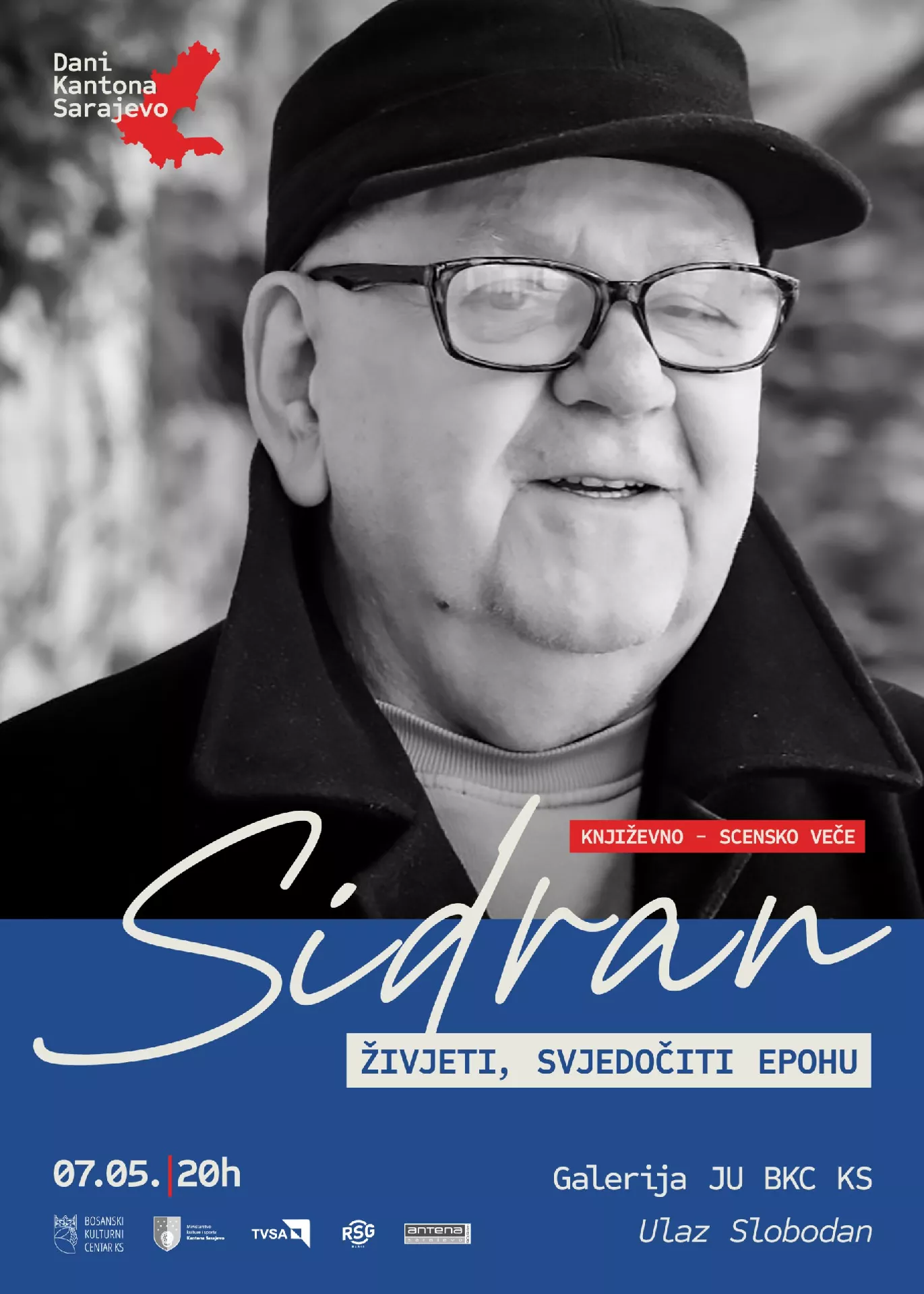 (Patria) - U Galeriji Bosanskog kulturnog centra (BKC) u Sarajevu večeras će s početkom u 20 sati biti upriličen književno-scenski događaj "Večer za Sidrana: Živjeti, svjedočiti epohu".