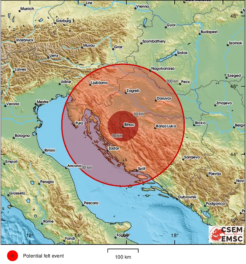 Prema podacima EMSC-a, epicentar zemljotresa je bio 30 kilometara sjeverozapadno od Bihaća.