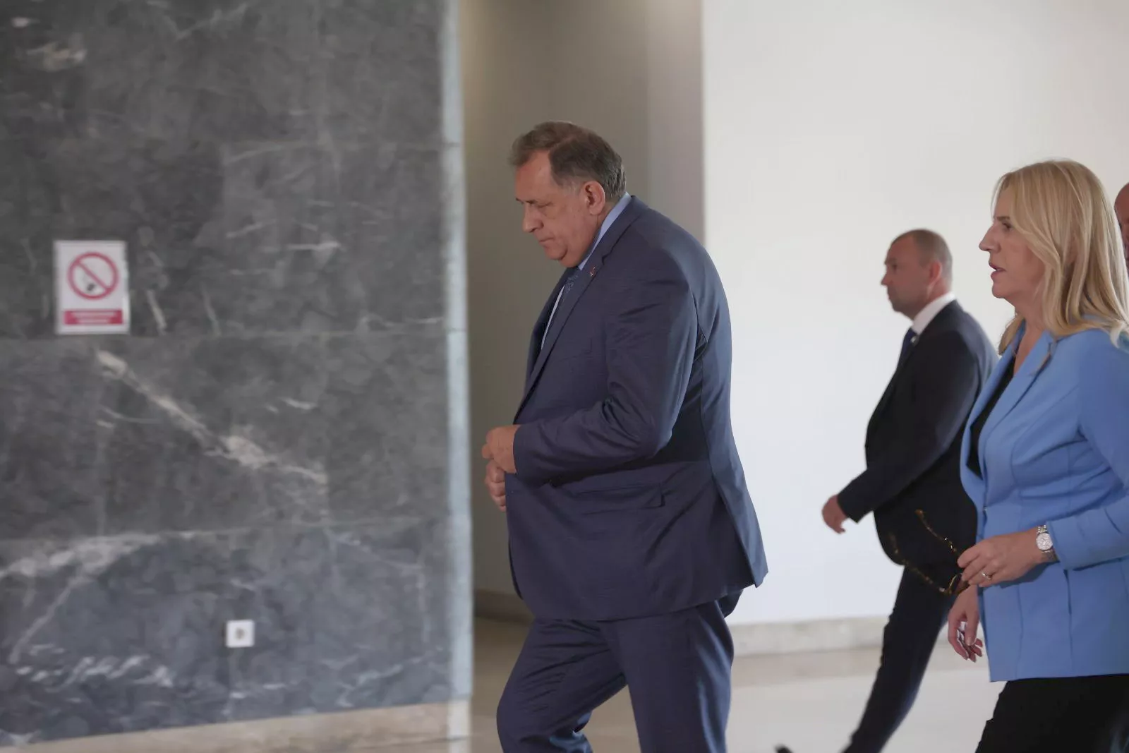 Fotoreporter Novinske agencije Patria zabilježio je dolazak Dodika i članice Predsjedništva BiH Željke Cvijanović u zgradu institucija BiH, gdje se sastanak i održava.
