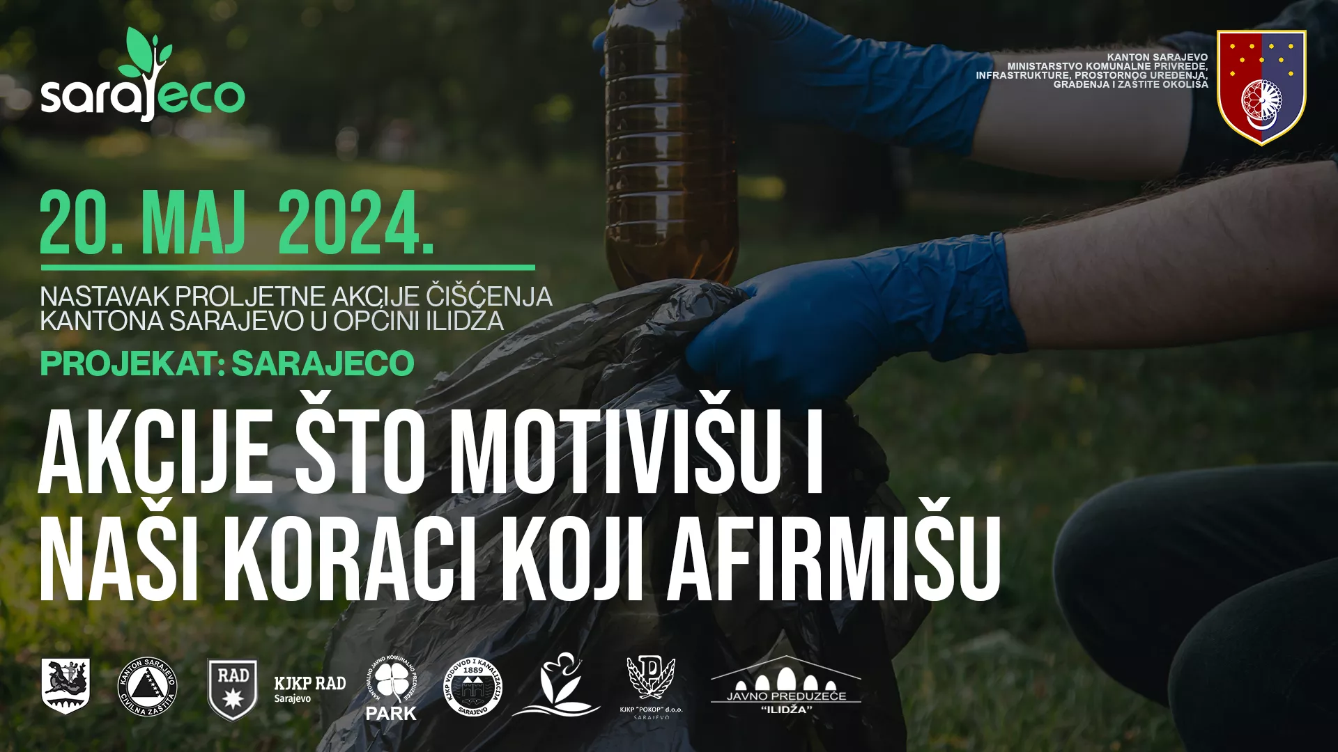 (Patria) - Proljetna akcija čišćenja KS - SarajECO, koju provodi Ministarstvo komunalne privrede, infrastrukture, prostornog uređenja, građenja i zaštite okoliša KS, u ponedjeljak, 20. maja, od 7 sati počinje na području općine Ilidža.