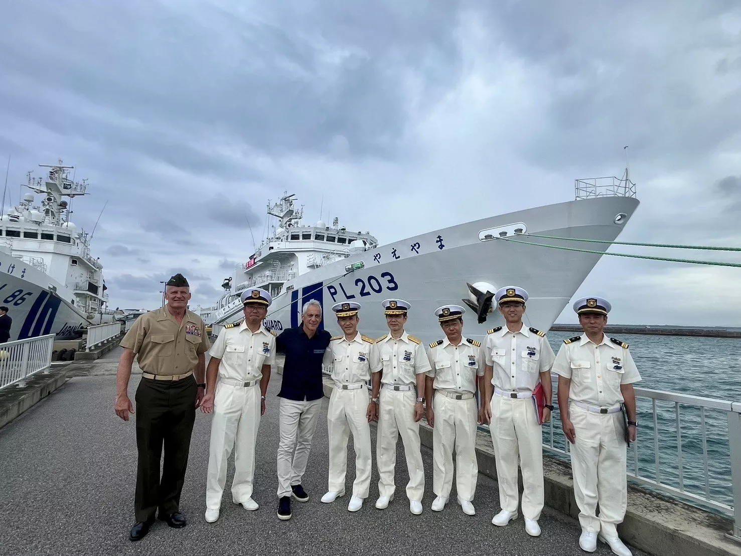 Zatim je posjetio ostrvo Ishigaki, dom patrolnih brodova japanske obalske straže koji brane ostrva u Istočnom kineskom moru i japanske ribare od brodova kineske obalske straže koji rutinski ulaze u japanske vode.