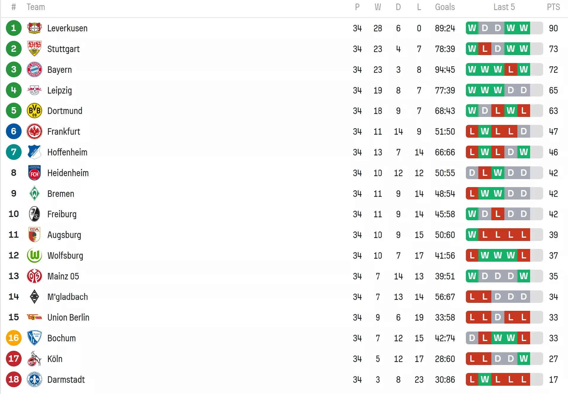 Šestoplasirani Frankfurt osigurao je nastup u kvalifikacijama za Evropsku ligu, a Hoffenheim sa sedmog mjesta svoju šansu tražit će u Konferencijskoj ligi.