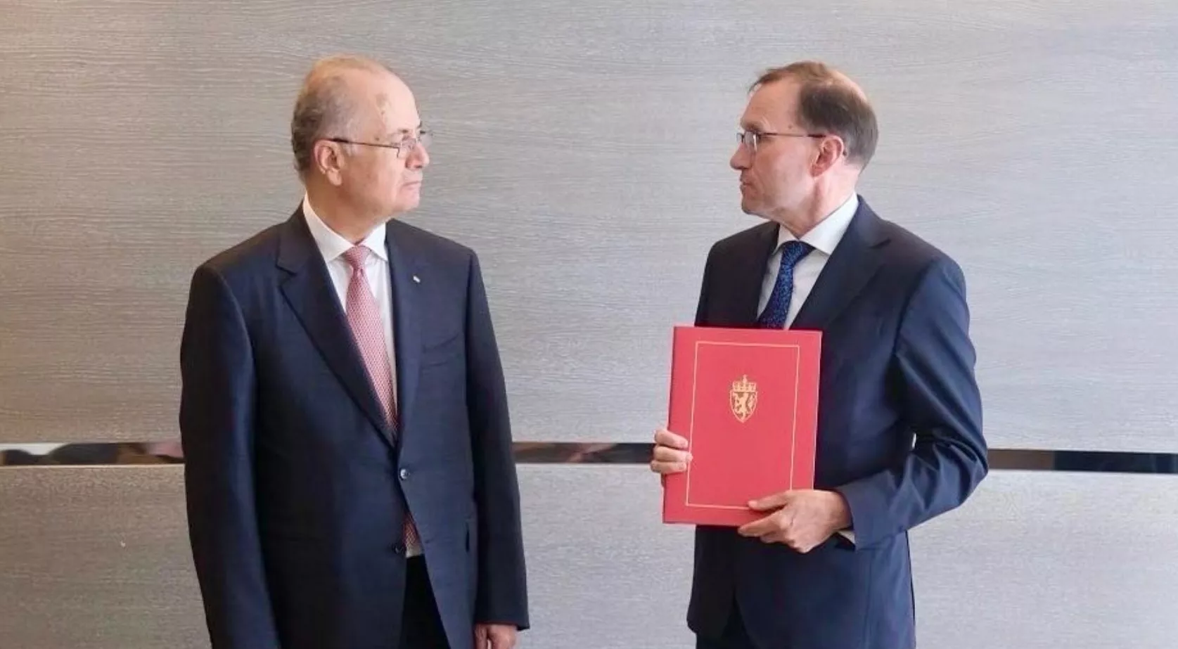 (Patria) - Norveški ministar vanjskih poslova Espen Barth Eide predao je jučer palestinskom premijeru i ministru vanjskih poslova Mohammedu Mustafi diplomatske dokumente koji simbolizuju priznanje Države Palestine.