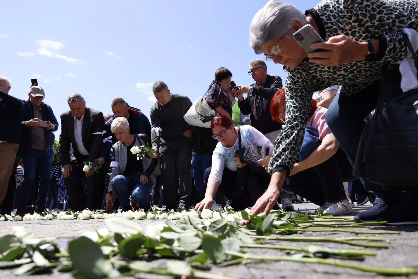 Članovi porodica poredali su ruže s imenima ubijene djece na trgu dok su njihova imena izgovarana na razglasu.