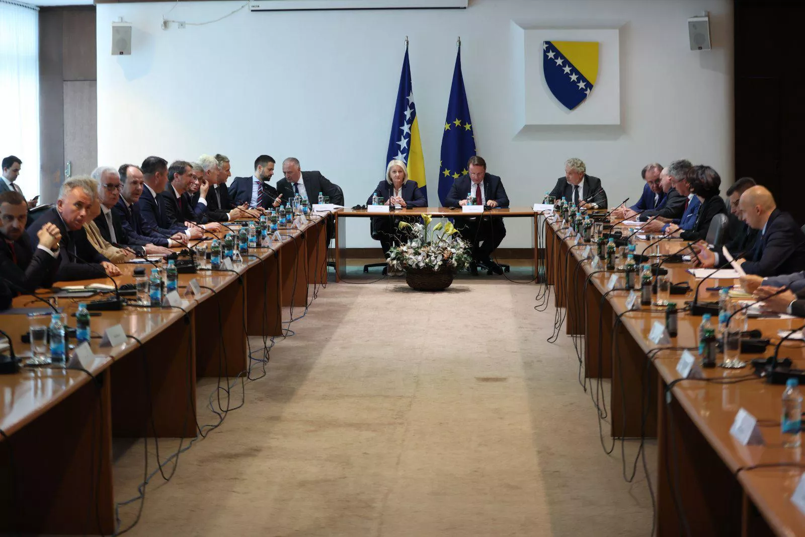 Iskazala je zadovoljstvo što su na današnjem sastanku imali konstruktivan i otvoren razgovor, napomenuvši kako su svjesni da postoje određeni izazovi ali da uz izgradnju povjerenja, međusobnog dijaloga i kroz donošenje odluka u institucijama vlasti BiH "možemo i trebamo se kretati naprijed".