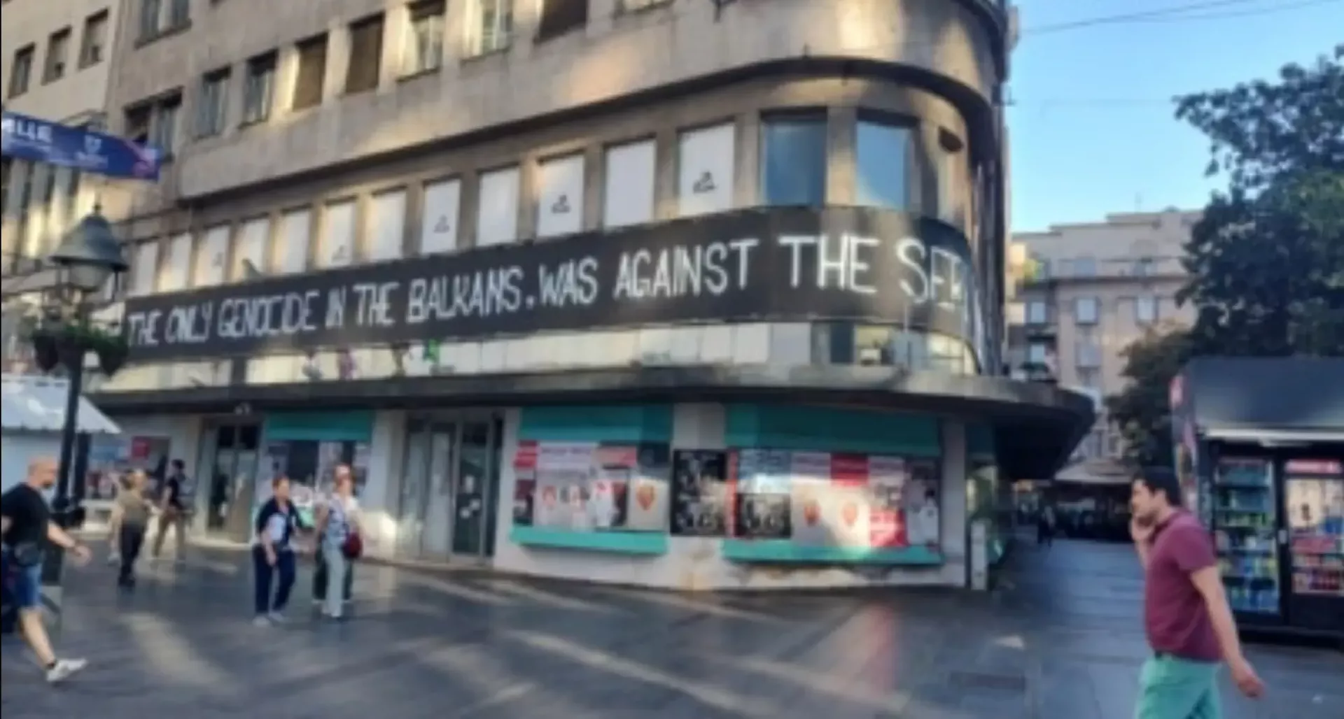 (Patria) - U centru Beograda osvanuo je veliki grafit na kojem na engleskom jeziku piše "Jedini genocid na Balkanu bio je nad Srbima".