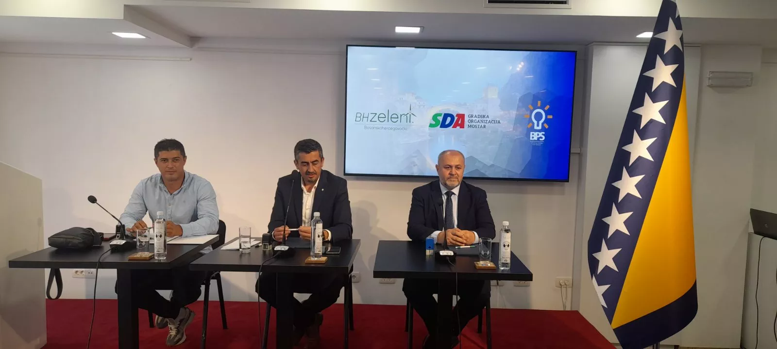 Na press konferenciji su se obratili predsjednik stranke BH Zeleni Sevlid Hurtić, predsjednik Gradskog odbora SDA Mostar Alis Čolaković i predsjednik Kantonalnog odbora BPS - Sefer Halilović Mostar Mesud Hero.