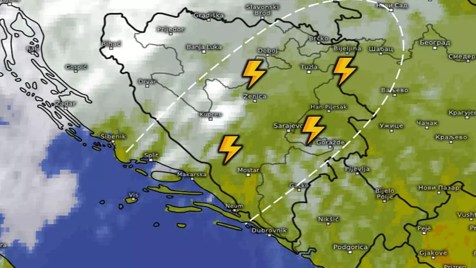 - Uz jači razvoj konvektivne naoblake, lokalno se očekuje i nevrijeme uz veću količinu padavina u kratko vrijeme, led i pojačan vjetar za što je najveća šansa u nastavku dana u dijelovima jugozapadne, centralne, sjeveroistočne i istočne Bosne.