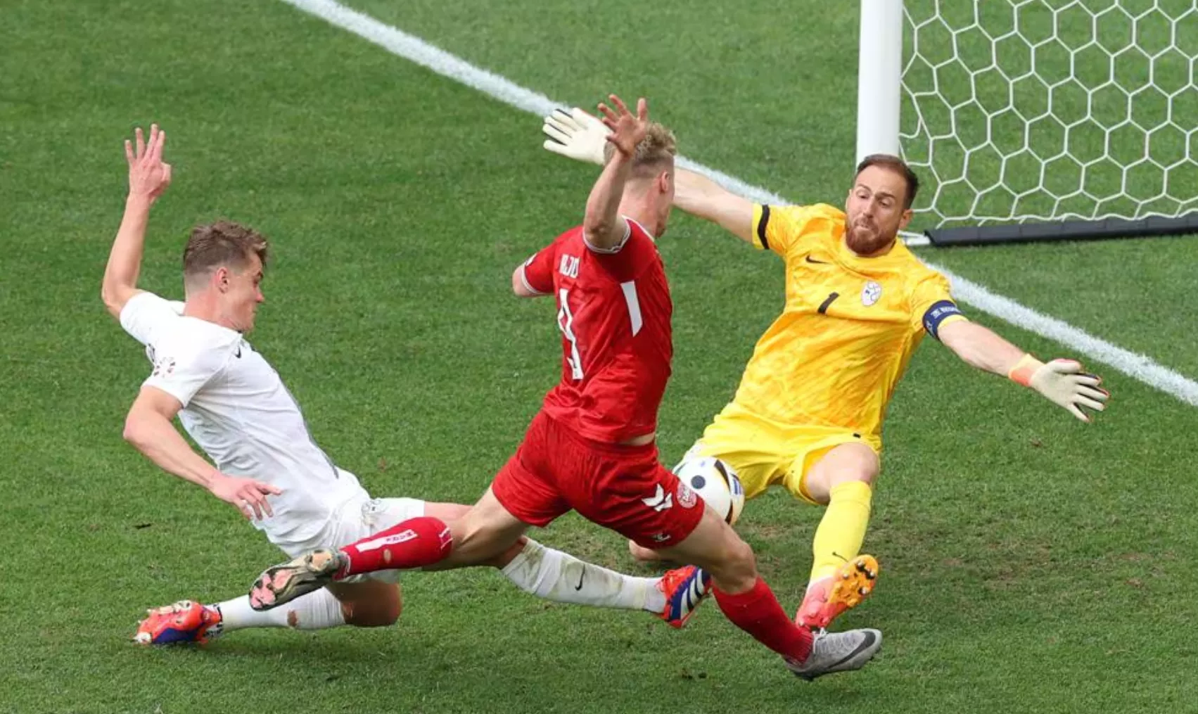 Danska je u vodstvo stigla u 17. minuti golom Christiana Eriksena, a Slovenci izjednačili preko Erika Janže u 77.