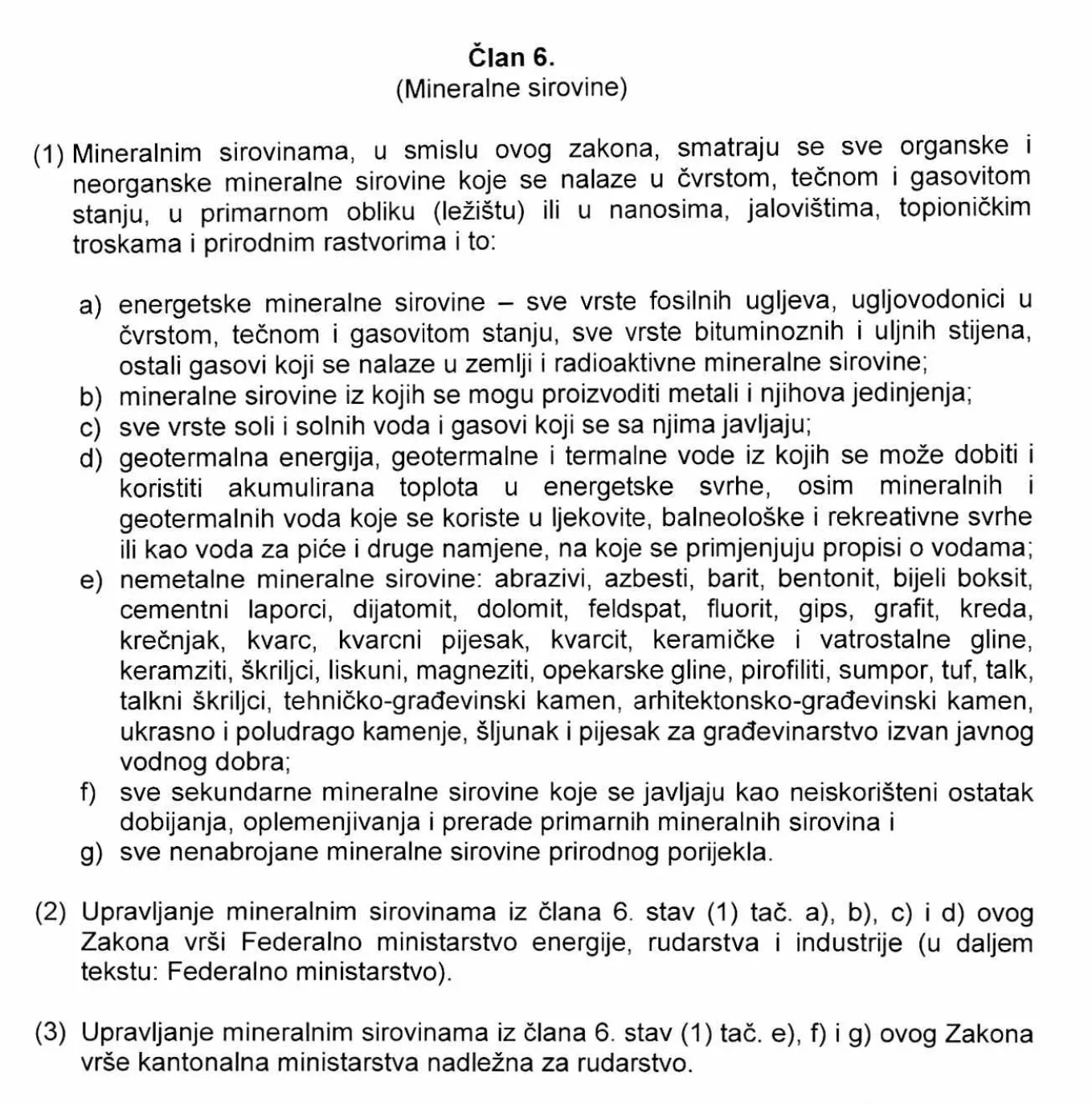 Pratimo član 6 predloženog Zakona o rudarstvu FBiH. Evo kako glasi:
