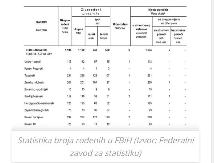 Također, u Kantonu Sarajevo i Bosansko-podrinjskom kantonu, gdje je uvedena podrška za višečlane porodice, prema podacima Zavoda za statistiku, prisutan je pad nataliteta, ali znatno manji u odnosu na kantone u kojima ove mjere nisu uvedene.