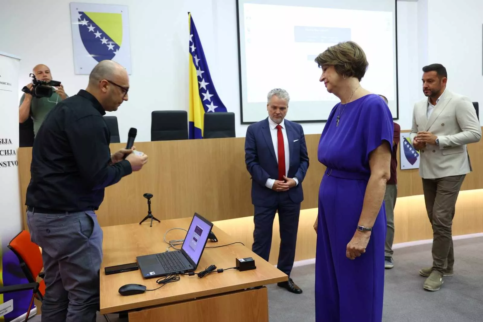 (Patria) - Ceremonija uručenja i demonstracije opreme u okviru projekta "Autentifikacija birača i transmisija rezultata sa biračkog mjesta" održani su danas u u Centru za edukaciju Centralne izborne komisije Bosne i Hercegovine (CIKBiH) u Sarajevu.