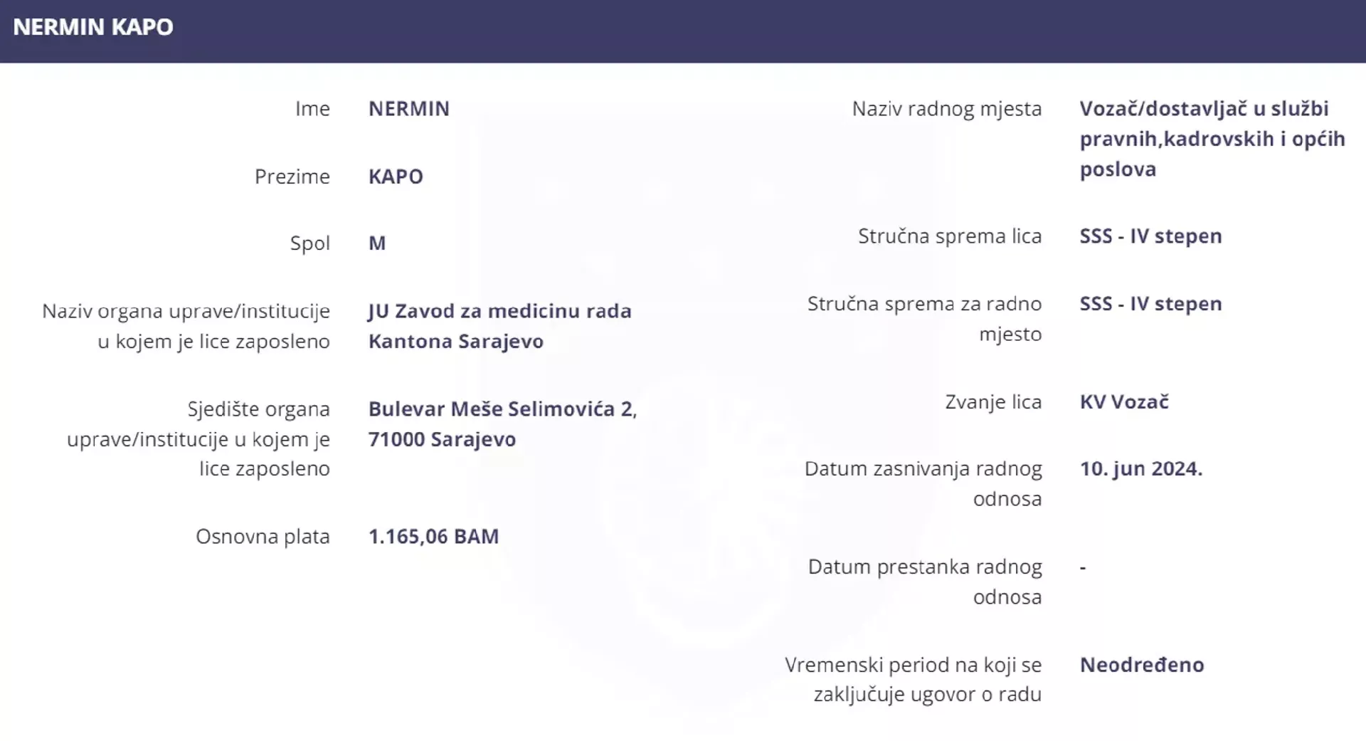 Neka kaže istinu, a ta djeca istinu već svjedoče. Kapo je sudeći po Registru zaposlenih u KS već prijavljen na neodređeno i radna prava i staž mu teku od 10. juna ove godine.