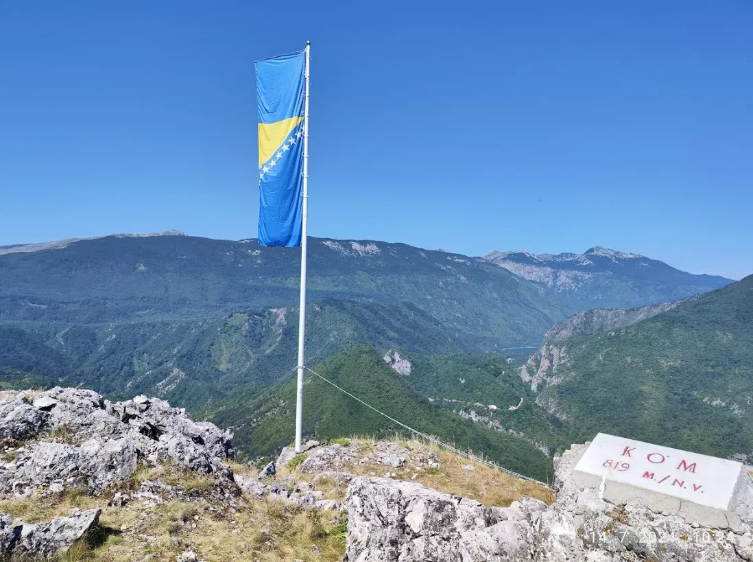 (Patria) - Grupa entuzijasta, zaljubljenika u prirodne ljepote grada Konjica i njegovo bogato kulturno-historijsko naslijeđe, uspješno je realizirala akciju postavljanja deset metara visokog jarbola i zastave Bosne i Hercegovine na Komu – vrhu na kojem se nalaze ostaci istoimenog srednjovjekovnog grada koji se prvi