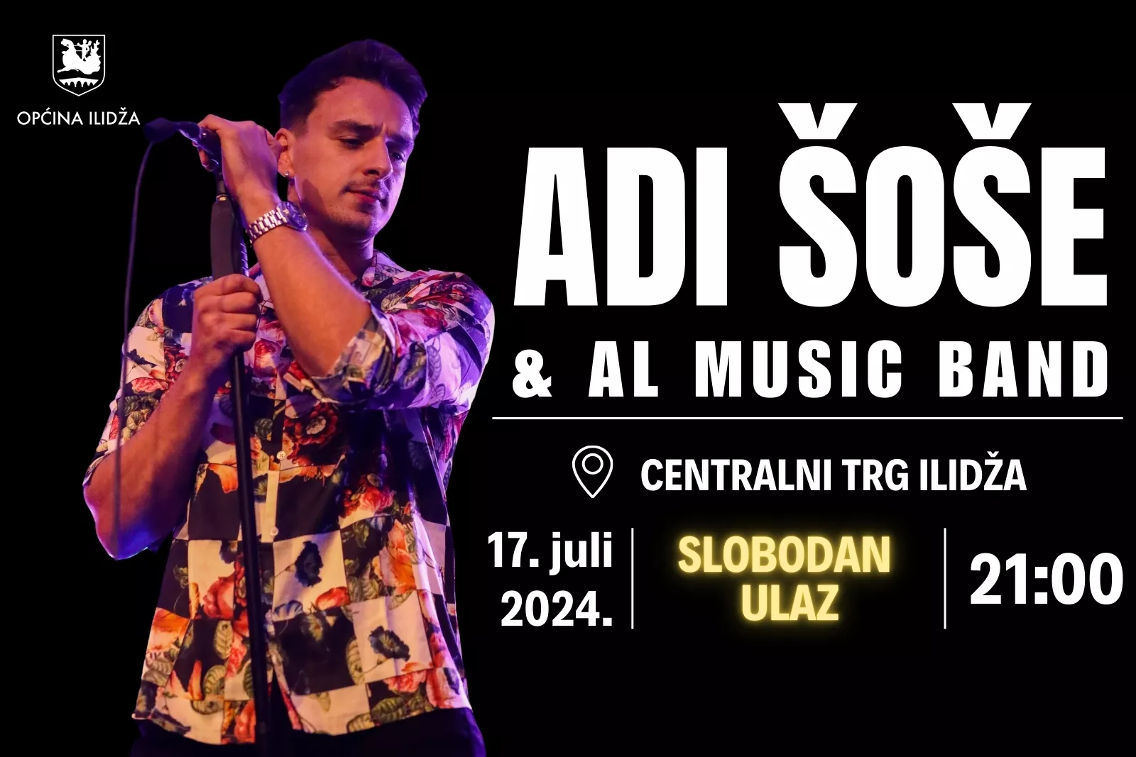 (Patria) - Obnovljeni Centralni trg na Ilidži 17. jula bit će domaćin još jednog koncerta, a zahvaljujući Općini Ilidža besplatan koncert na najvećem trgu u Kantonu Sarajevo održat će Adi Šoše & AL Band.