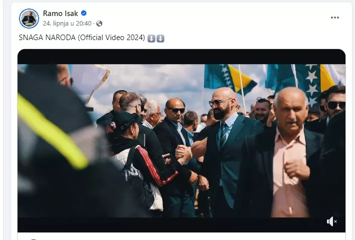 Na profilu Rame Isaka je i dalje vidljiva objava od 24. juna, kao i na You Tube kanalu Snage naroda istoimeni spot.