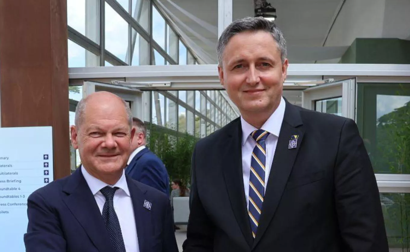(Patria) - Predsjedavajući Predsjedništva BiH Denis Bećirović razgovarao je danas s njemačkim kancelarom Olafom Scholzom u okviru samita Evropske političke zajednice koji se održava u Ujedinjenom Kraljevstvu Velike Britanije i Sjeverne Irske.