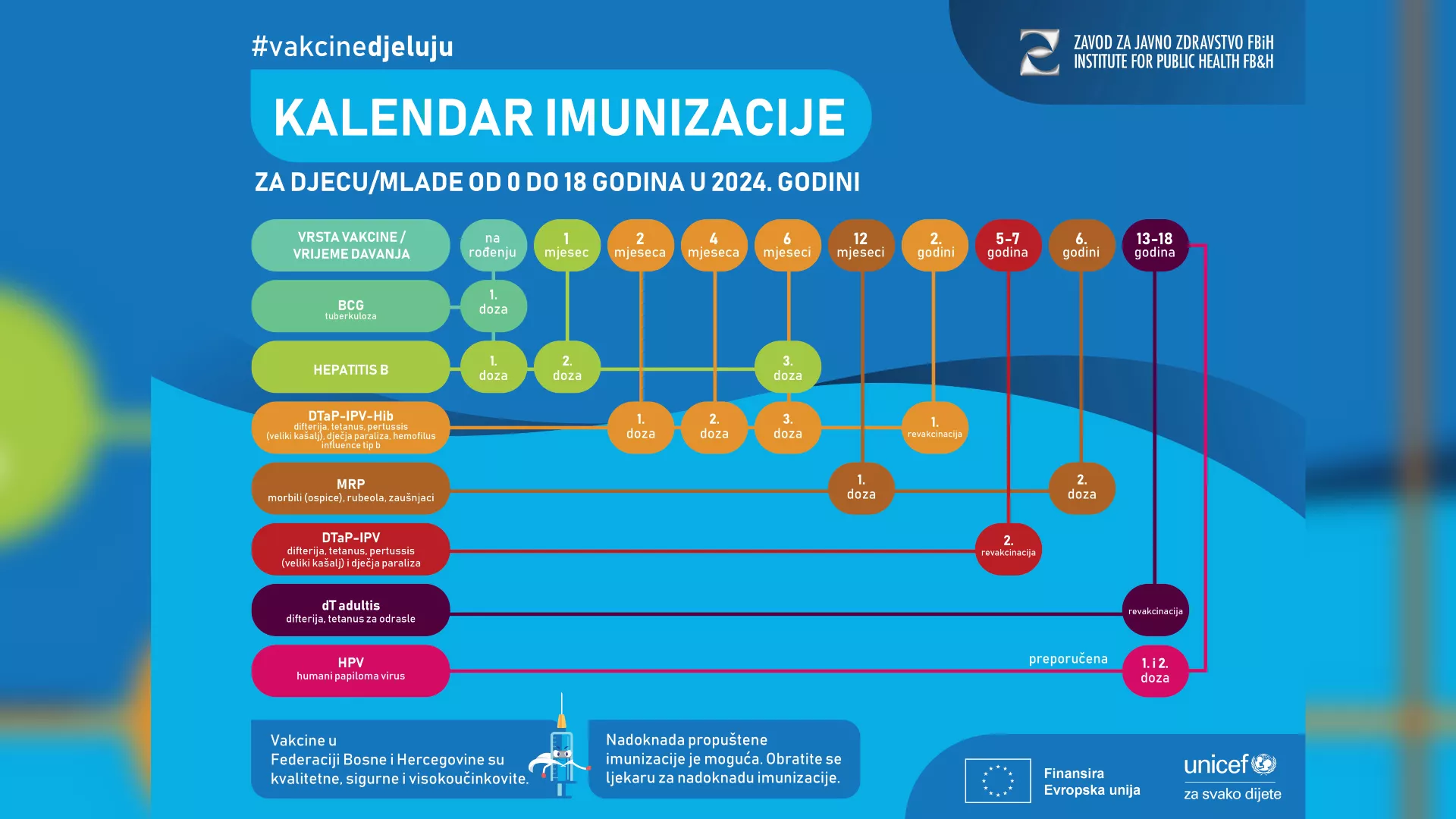 "Cjepiva za djecu ima dovoljno. Ponovo apeliramo na roditelje da je imunizacija najbolja mjera za sprječavanje obolijevanja te razvoja komplikacija i umiranja od zaraznih bolesti. Imunizacijski program u Federaciji Bosne i Hercegovine je siguran, kvalitetan, visokoučinkovit i besplatan. Suradnja roditelja u razumijevanju i prihvatanju imunizacije su prioritet u postizanju i održanju visokih obuhvata imunizacijom te sprječavanju obolijevanja i širenja infekcije", poručuju iz Zavoda za javno zdravstvo FBiH.