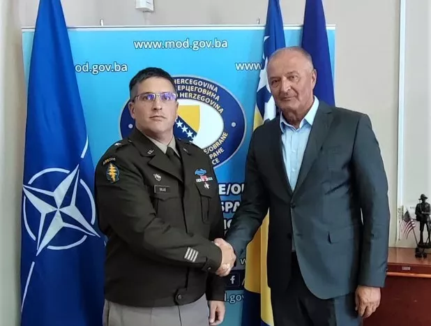 (Patria) - Ministar odbrane BiH Zukan Helez danas je održao sastanak sa komandantom NATO Štaba Sarajevo brigadnim generalom Metjuom Valasom (Matthew Valas).