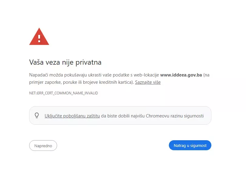 (Patria) - Agencija za identifikacione dokumente, evidenciju i razmjenu podataka BiH potvrdila je da je web stranica IDDEEA-e bila privremeno nedostupna zbog nepredviđenih problema u radu telekomunikacionih usluga.
