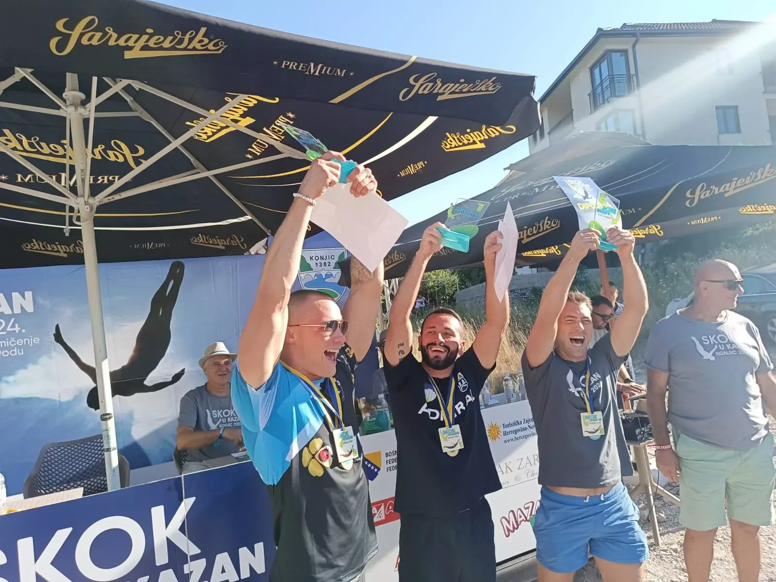 (Patria) - Sarajlija Dino Bajrić odbranio je titulu najboljeg na manifestaciji "Skok u Kazan", XXII. Međunarodnog takmičenja u ekstremnim skokovima u vodu, koje je održano danas na glavnoj gradskoj plaži u Konjicu.