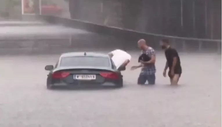 Žena je povučena pod autobus od siline poplave u području Döblinga na sjeveru grada u subotu, objavio je ORF. Prevezena je u bolnicu i u kritičnom je stanju, dodaje se.