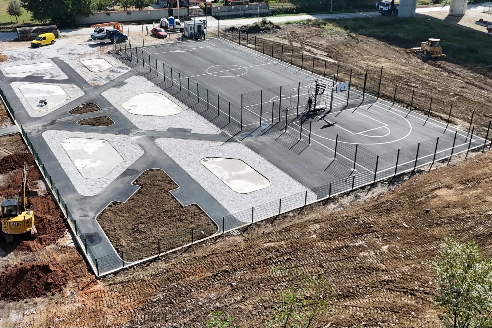 Asfaltirane su sve površine, instalirani golovi i koševi, ocrtane linije terena a postavljena je i zaštitna ograda na budućem igralištu koje se nalazi na površini od 2.200 metara kvadratnih.