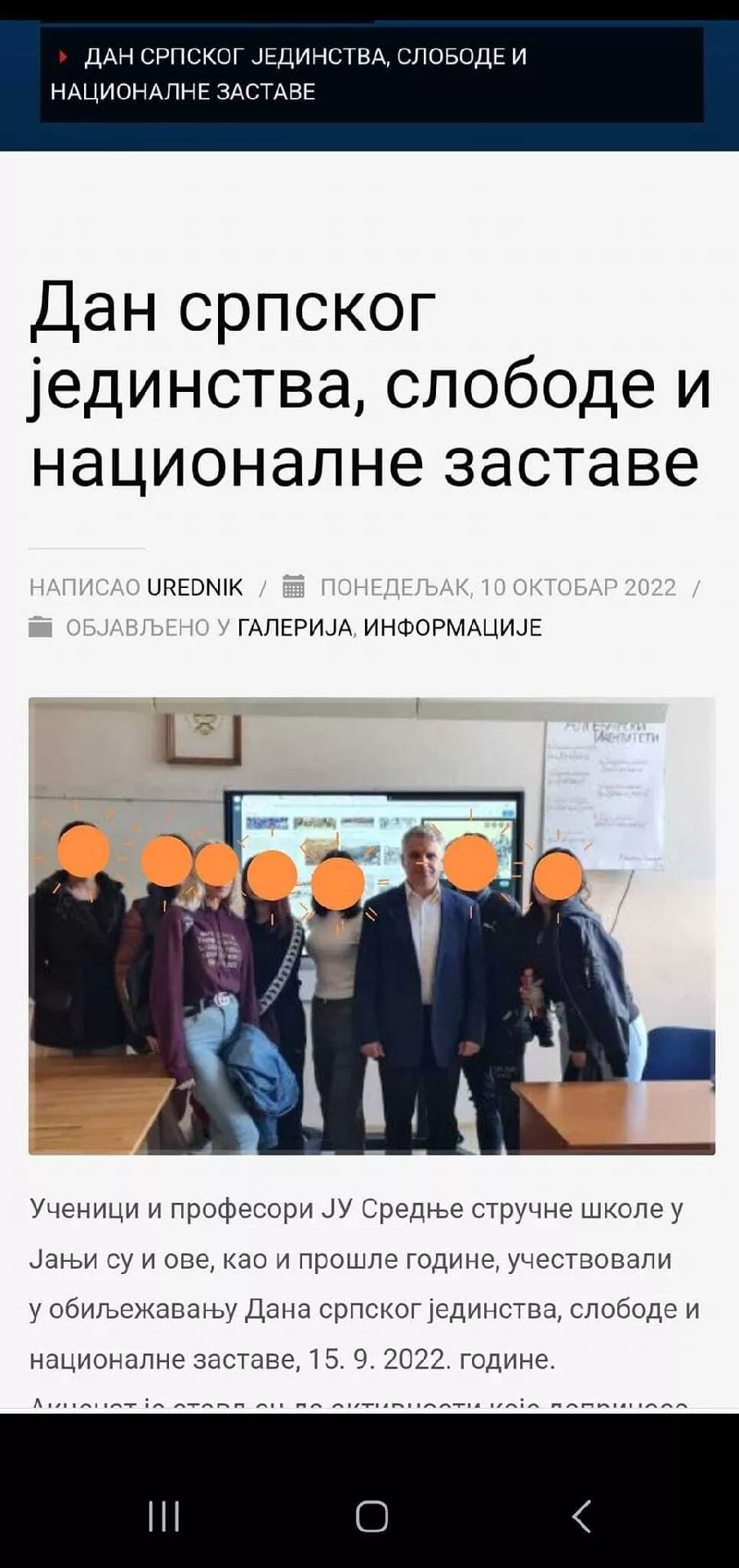 Ibrišimović je naime, ovih dana aktivno, kao u ostalom i prethodnih godina, učestvovao u kreiranju programa i u obilježavanju dana srpskog jedinstva i zastave u Srednjoj stručnoj školi u Janji i još se time pohvalio na društvenim mrežama! Kome poslije ovoga nije jasno šta je Naša stranka onda taj ne zna ništa o politici.