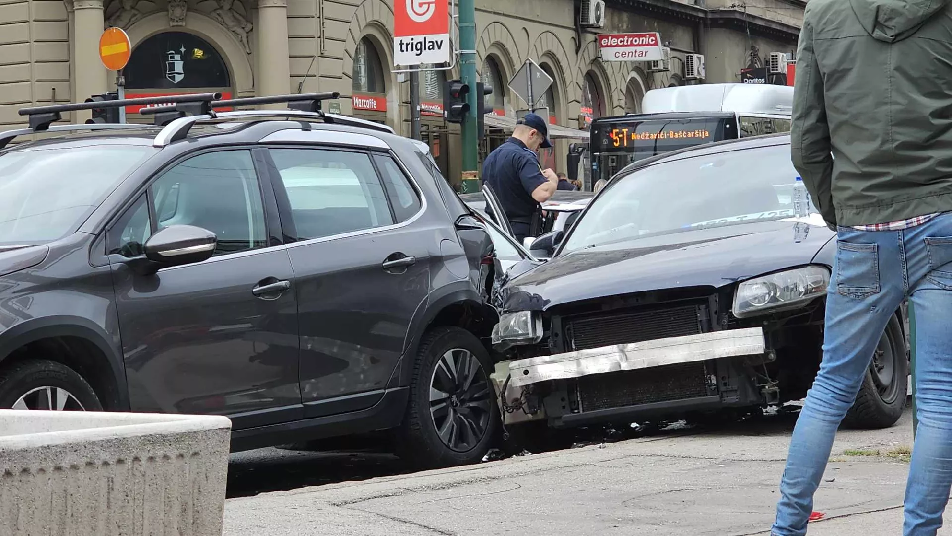 Do sudara je došlo u krajnoj lijevoj traci za skretanje prema Vrbanja mostu, a na svim vozilima nastala je materijalna šteta.